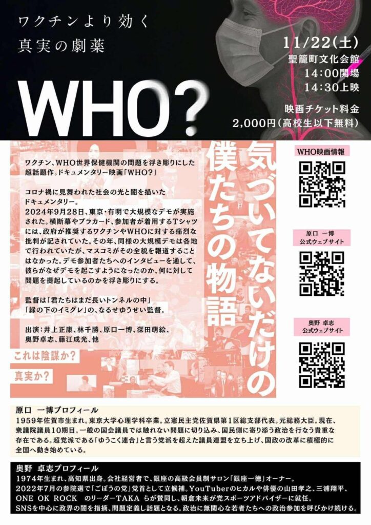 私たちが今知らなければいけない正しい情報、真実を会場で受け取って頂き、今後の生活、未来に繋げて頂けたらと願っております。