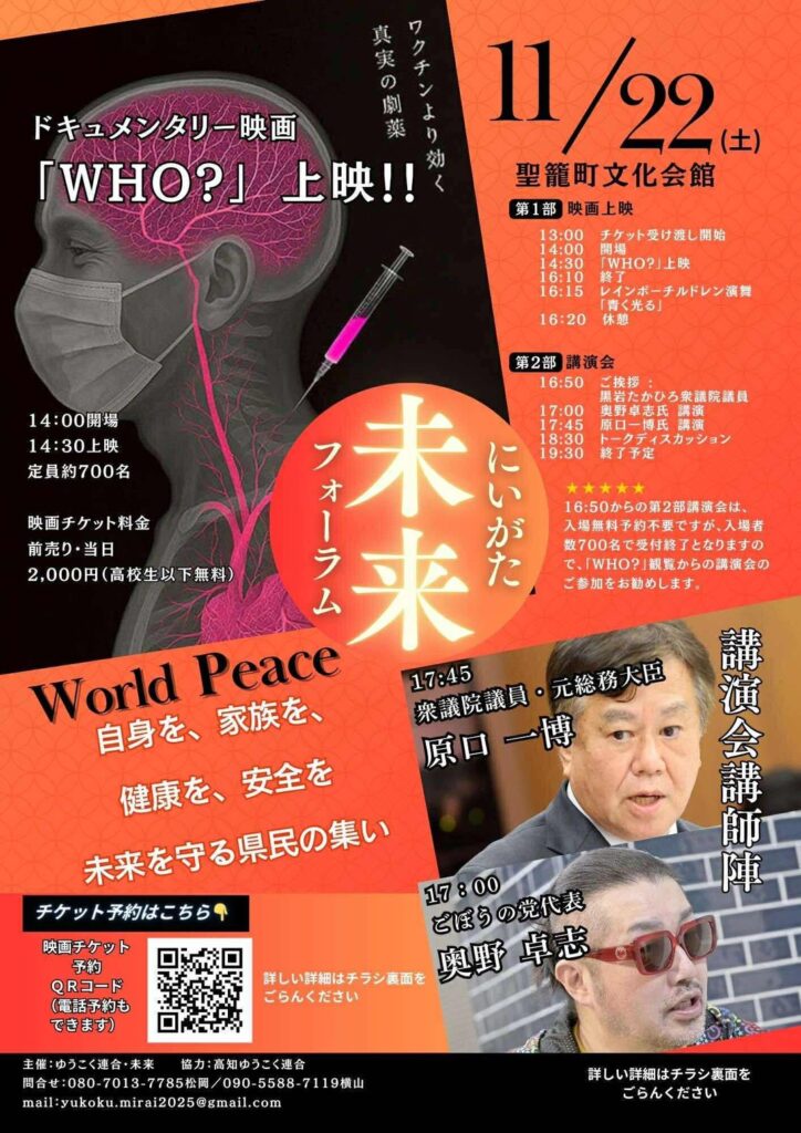 私たちが今知らなければいけない正しい情報、真実を会場で受け取って頂き、今後の生活、未来に繋げて頂けたらと願っております。